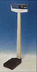 Portable physician scale. Easy to read double beams with slide poises. Rugged zinc die cast beam construction with copper, nickel, chrome plating. Beam graduations are engraved in die casting, paint filled with baked enamel finish. Maximum strength unitized steel base. Precision heavy duty steel lever system with heat treated pivots and bearings. ABS high impact plastic platform cover. Overall size: 18 3/8" x 20 1/4" x 57 3/4" high. Weight 30 lb.